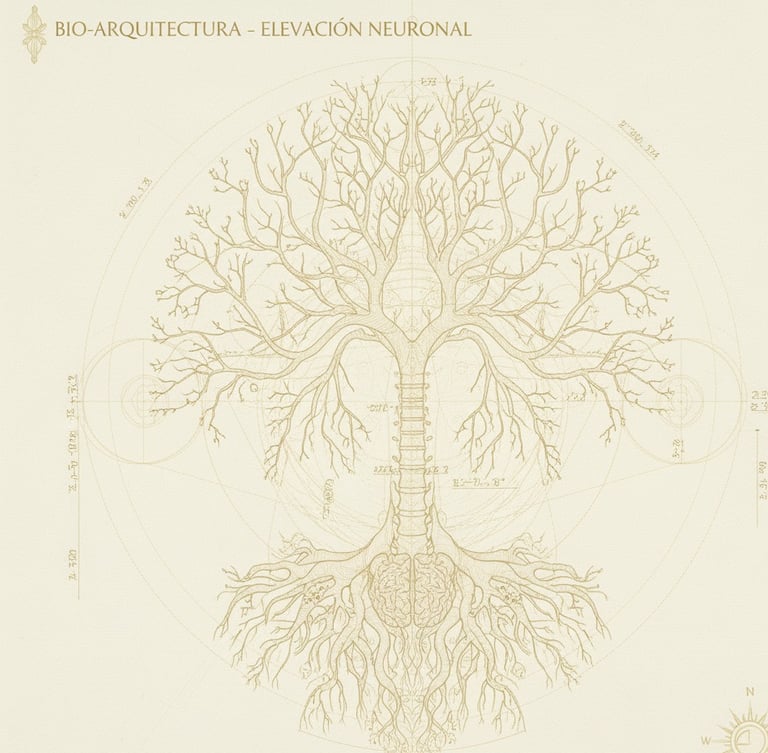 La vida no crece en líneas rectas como se ve en la mayoría de la arquitectura a la que nos hemos adaptado; crece en fractales (patrones que se repiten a diferentes escalas) y bajo la proporción Áurea (Phi).